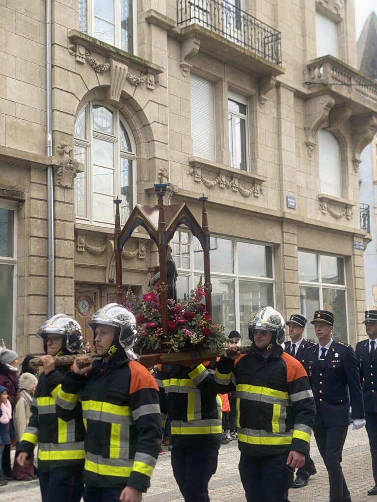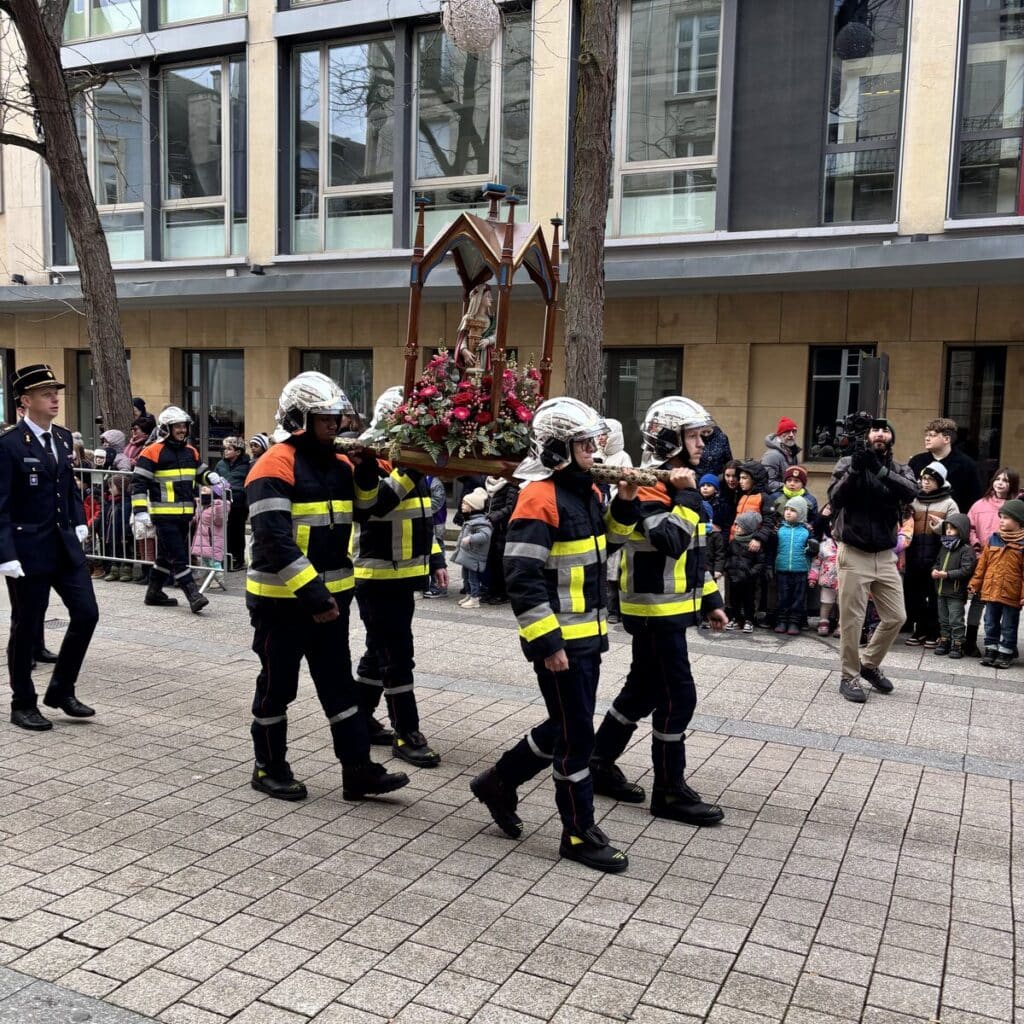 Die Feuerwehrmänner haben eine Statue der Barbara getragen. Juliette