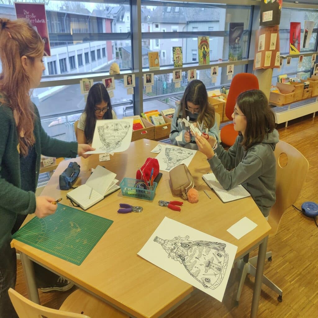 Wir haben viel über “Bäerbelendag” geredet. Wir haben Workshops zum Thema gemacht. Wir haben drei Workshops gemacht. In einem Workshop wurde ein Mini-Buch gemacht, in einem anderen wurde eine Barbara-Marionette gebastelt und die letzte Gruppe hat eine Geschichte über Barbara erfunden. Ich habe gelernt, warum sie von ihrem Vater getötet wurde. Am nächsten Tag sind wir auf einem Cortège gegangen, um es zu feiern. Am Anfang und am Ende haten Leute Kanonen vom Galgebierg geschossen. Inaya