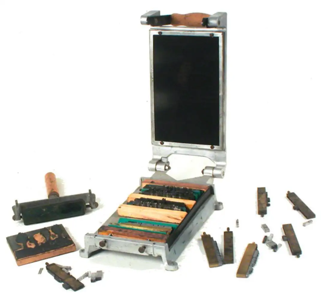 – die konkrete Manipulation der Bleibuchstaben mit den Händen, das heißt die haptische Dimension des Setzens und Schreibens,