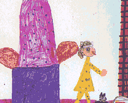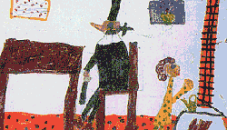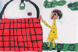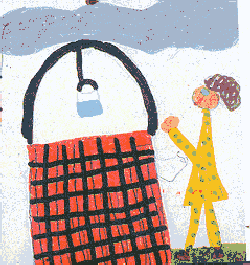 Tante Anna sieht, wie ärgerlich er ist. "Bringt Sie denn gar nichts aus der Ruhe?!" stößt der Schwarze Mann zwischen den Zähnen hervor. "Nein, heute nicht", sagt Tante Anna und holt ihren Schaukelstuhl. "Als ich heute morgen sah, dass der Brunnen leer war, da wußte ich: heute ist mein Glückstag!" |