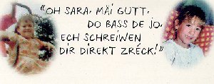 OH SARA, MÄI GUTT, DO BASS DE JO, ECH SCHREIWEN DIR DIREKT ZRÉCK!