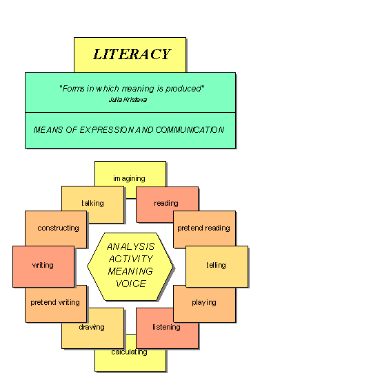 Il est évident que les médias ont largement et rapidement transformé le concept de "literacy" au cours des dernières décennies. Il suffit de comparer un journal paru il y a vingt ans avec un journal ou un magazine d’aujourd’hui, la télévision de ma jeunesse avec la télé d’aujourd’hui. L’audiovisuel fait aujourd’hui partie intégrante de l’univers sémiotique de chaque enfant. Les traces de l’omniprésence médiatique se retrouvent dans le langage même de l’enfant, de même que dans ses essais de représentation par les mouvements corporels, le jeu et le dessin et d’autres constructions, donc dans ses "textes": "As texts draw more and more overtly on visual means of communication, the skills and knowledges of visual design and display need to be fostered as a central part of any literacy curriculum." 27 Le langage écrit en particulier ne révélera son plein potentiel que sur la base des autres systèmes symboliques que l’enfant contrôle déjà: "(...) writing emerge couched within other symbolic media over which they [= the children] have already gained control." 28 |