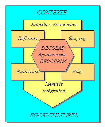 Les projets DECOLAP et DECOPRIM interprètent ces "textes" comme histoires (ou "storying") particulières de chaque enfant. Il faut cependant nuancer une position aussi individualiste, car ces histoires sont la plupart du temps le résultat d’une construction ou reconstruction collectives par les membres d’une communauté scolaire. Je suis certain que les lecteurs qui voudront bien prendre le temps nécessaire pour analyser les dessins et les textes des enfants ainsi que les transcriptions reproduites dans la première brochure DECOPRIM souscriront à ces paroles. Pour assurer un contexte favorable à l’apprentissage, il nous faut promouvoir l’échange et l’interaction dans le groupe scolaire.
