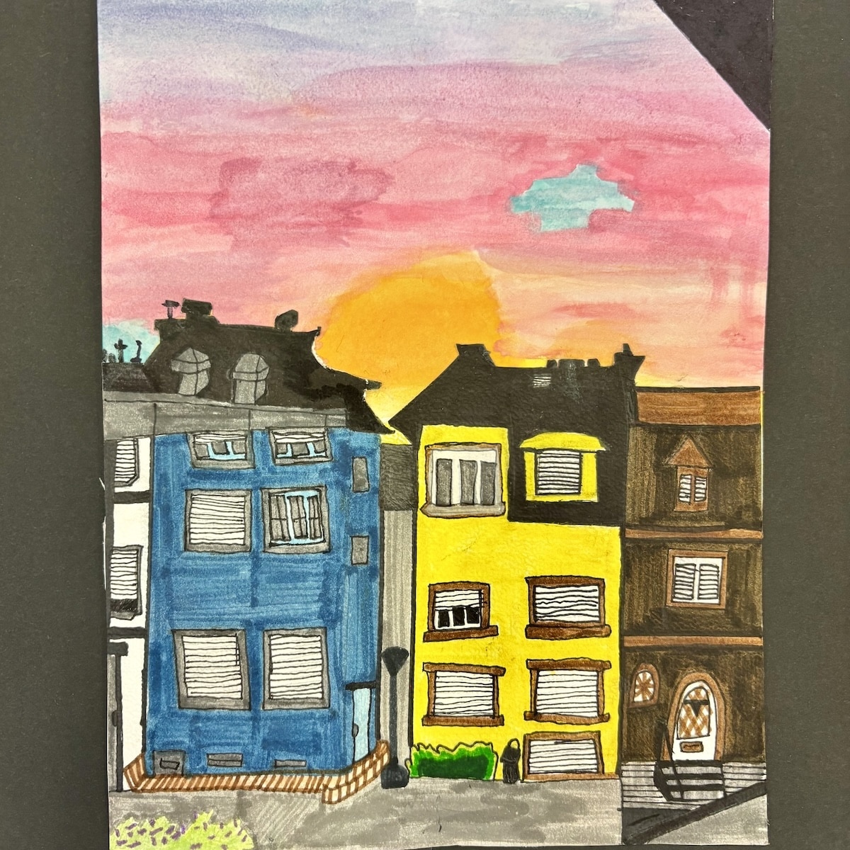 Das Material, das ich benutzt habe, sind Aquarell-Bleistiftsfarben, Filzstifte und ein Lineal. Ich mag das Bild, weil es sehr schön ist.