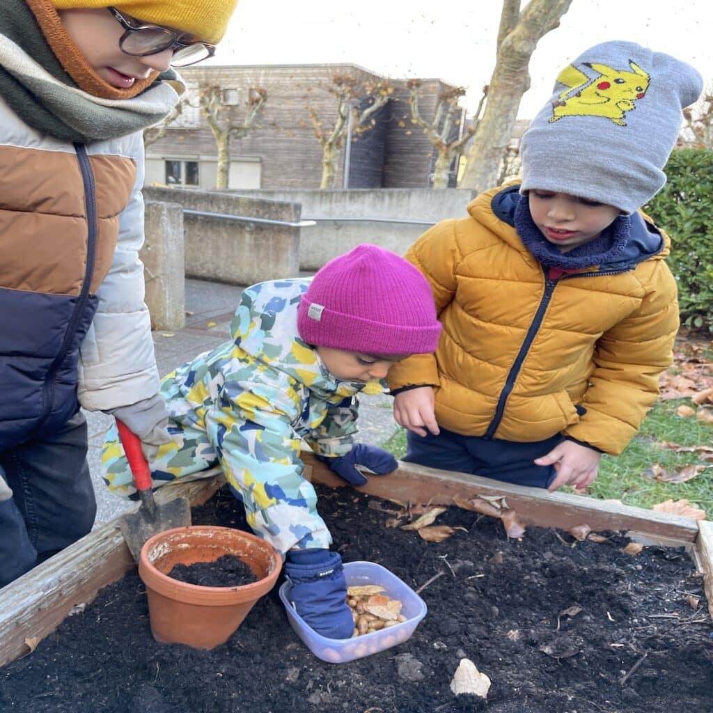 Die dreijährigen Kinder waren zu Besuch im Atelier Commun „Garten“. Das Leitmotiv unserer Schule „Zësumme liewen, zësumme léieren.“ haben die Kinder im Atelier gelebt. Die älteren Kinder haben den Jüngsten unserer Schule auf eine einfache und natürliche Art gezeigt, was wir im Gartenatelier machen. Sie haben sich authentische Lernsituationen überlegt und sind einander auf Augenhöhe begegnet. Es war ein sehr schöner Austausch, der für alle Beteiligten bereichernd war.
