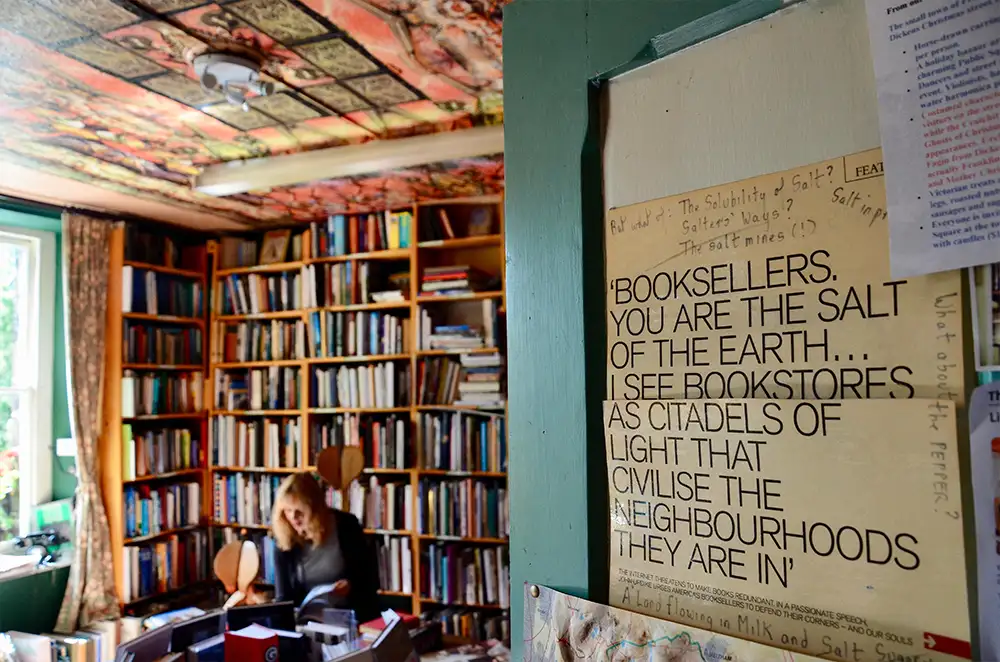 Deshalb schätzt John Updike auch Bibliotheken und besonders Buchhandlungen, auf die wir zurückgreifen können, um uns beim Lesen und Schreiben zu inspirieren.