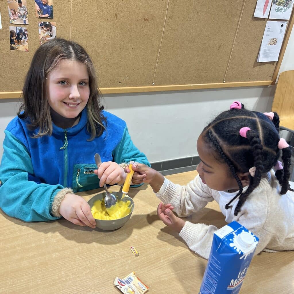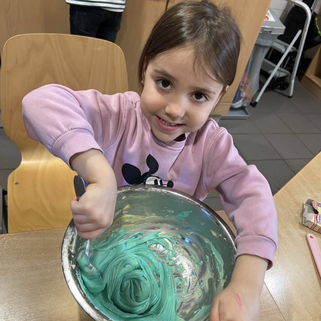 Diese Aktivität förderte nicht nur die Kreativität und die Zusammenarbeit der Kinder, sondern vertiefte auch ihr Verständnis für Naturphänomene. Gleichzeitig hatten sie die Möglichkeit, das Gelernte praktisch anzuwenden und ein gemeinsames Erfolgserlebnis zu feiern, als sie am Ende ihren selbst gebackenen Regenbogenkuchen stolz betrachteten und anschließend gemeinsam genießen konnten.